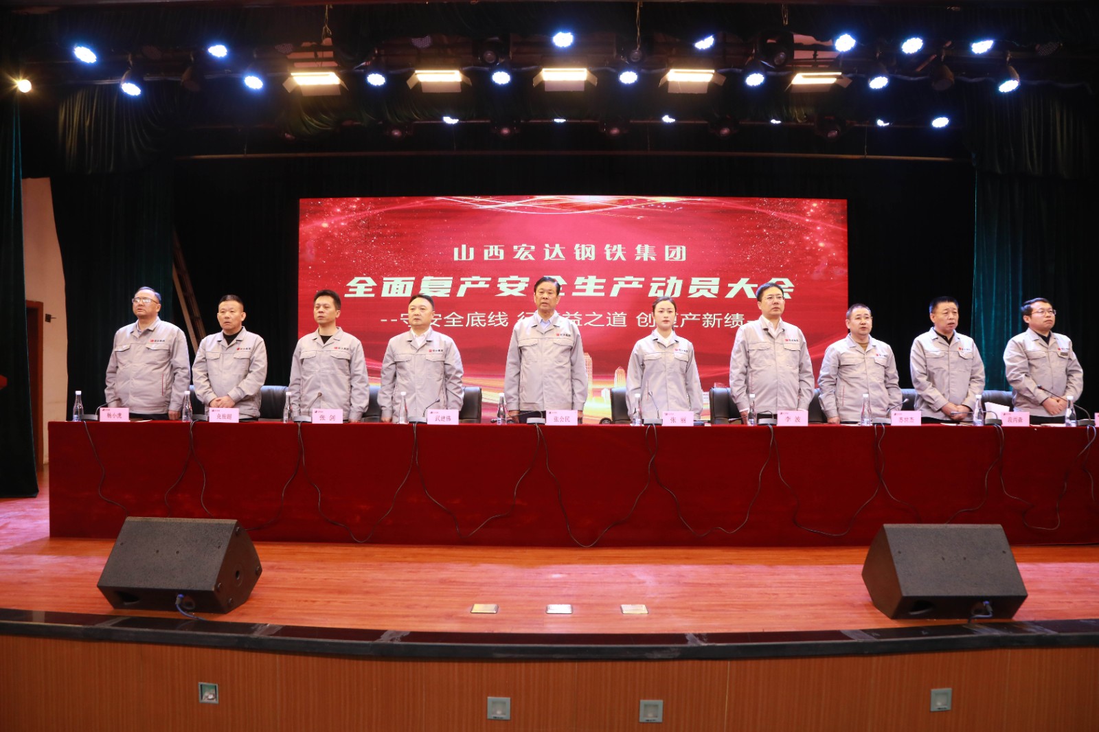 春潮涌动启新程,实干担当护安全。随着为期两个月的全面检修圆满完成,3月19日,山西宏达钢铁集团召开全面复产安全生产动员大会,集团全体领导班子、各部门负责人、生产车间骨干及一线员工代表齐聚一堂,统一思想、明确目标、部署任务,确保集团各生产环节安全、有序、高效推进全面复产,为全年生产经营工作开好局、起好步筑牢安全根基。